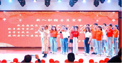 晚会上半场精彩表演结束后,荣休仪式温情上演。主持人深情回顾船山学院退休辅导员何继江老师的辛勤耕耘岁月,学工部部长李照上台为何继江老师献礼,何老师亦发表感言,言辞间流露着对教育事业的深情厚谊。随后,24名新进辅导员在全国最美辅导员、全国辅导员年度人物马军老师的领誓下,以洪亮而豪迈的誓言,展现了他们献身教育事业、培养社会主义合格建设者和可靠接班人的坚定决心和昂扬斗志,为南华学工队伍注入了新的活力与希望。