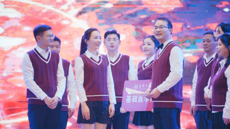 承前启后,继往开来。基础医学院辅导员老师带来舞蹈《来自辅导员的爱》,以青春欢快的节奏点燃全场。电气工程学院的舞蹈《手扶拖拉机斯基》继承幽默传统,展现辅导员的跳脱青春与无限活力。金锦涛、王详、陈晴等2024年新入职辅导员代表带来的朗诵节目《诗颂风华》,以诗之名,颂扬时代风华,激荡心灵华章。