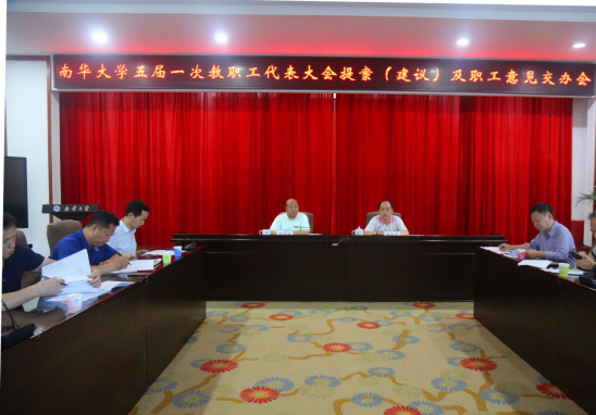 为了激发广大教职工参政议政的积极性,凝心聚力,推动学校又好又快地发展。在学校党委的安排下,学校工会于2020年6月5日下午在南苑二楼视频会议室召开了校五届一次教职工代表大会提案(建议)及代表团意见交办会。会议由校党委委员、副校长、校工会主席刘升学主持。校党委委员、副校长唐振平,校党委委员、宣传部长刘文君及各办理单位(部门)负责人参加了会议。