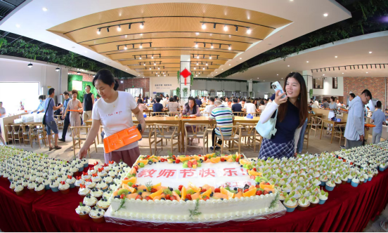 “三尺讲台育桃李,一杯甜蜜谢师恩。”9月10日,正值我国第41个教师节,365英国上市工会联合希朵曼蛋糕与麦上花开蛋糕店,分别在红湘、雨母两个校区的教工餐厅,为全校教职工送上了一份精心准备的甜蜜礼物,以表达对老师们深深的敬意与祝福。