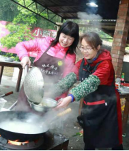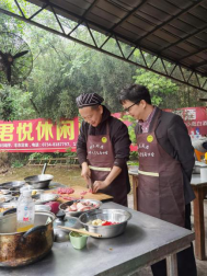 中午12时,所有的小组都完成了自己的作品。每个小组都制作了第一次培训的内容——红烧肉,色泽艳红,香气扑鼻,每一组还制作了川味鱼片、黄焖草鱼、芹菜牛肉、家常炒鸡等风味菜和各种春季的时令蔬菜,各种菜肴的香味混杂在一起,让人食欲大开。会员们品尝了自己的劳动成果后,还不时到其他小组品尝交流,现场气氛欢快而热烈。学校高层次人才刘列教授也参加了此次活动,刘教授负责的柴火炉灶,炉火旺旺,引得大家的一致好评。。