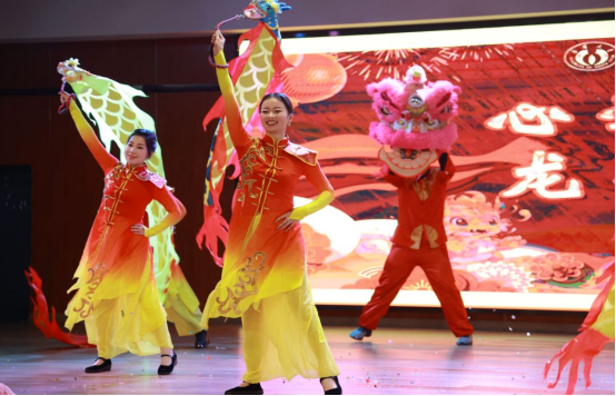 仪式过后,由刘俞慧和王逸韵两位老师的二胡演奏与伴舞《春三月》将我们拉回了联欢会,音乐旋婉转悠扬,意境唯美,舞者步伐轻盈,裙角翩翩。电气工程学院的舞蹈《爱》温馨有爱,充分展现了辅导员们团结进取、昂扬向上的良好精神风貌。医学院的老师们带来的朗诵《一路同行•医路辉煌》展现了南华人追求卓越的决心和意志。紧接着核科学技术学院的舞蹈《龙腾虎跃》欢腾有力,喜庆龙年,再一次将晚会推至高潮。语言文学院的《但愿人长久》寄托了南华学工对全体老师和观众新年阖家团圆的美好祝愿。护理学院的舞蹈串烧《快乐2024》在迎新之际,展现了南华学工老师别样的风采。晚会在资源环境与安全工程学院的大合唱《相亲相爱》中画上了圆满的句号。