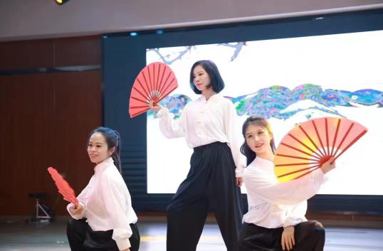 抽奖环节过后,新进辅导员们再次为我们展示了独特的T台秀《欣欣向荣》,表演者们身着中国风礼服亮相,尽显华夏风范。而由招就处和学工部联袂出演的舞蹈《花间酒+骑士精神》用中国风爵士与现代风爵士组合的方式博得了观众席的一阵喝彩。紧接着,名为《时代青春曲》的歌曲串烧向我们展示了辅导员们的青春活力、热情活力。